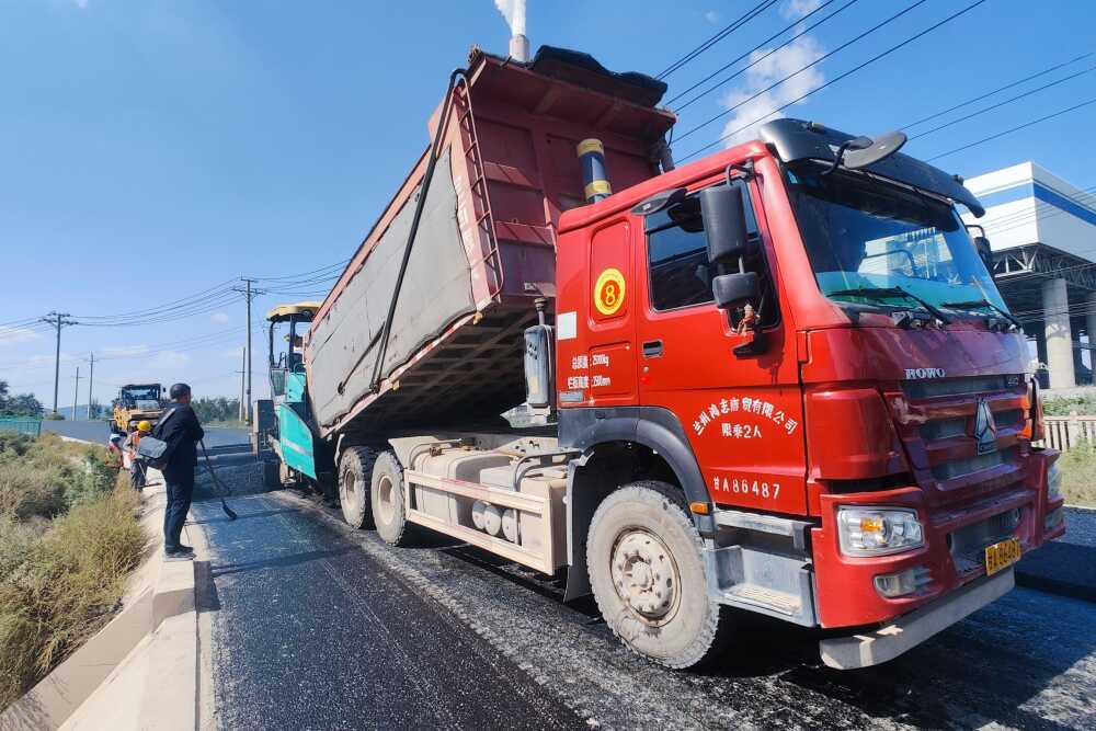 2024年9月21日,利用新技術(shù)研發(fā)的退役風(fēng)機(jī)葉片改性瀝青混合料在路面上得到鋪筑和示范。受訪者供圖