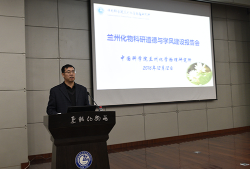 12月12日上午,中國科學(xué)院院士、中國科學(xué)院蘭州化學(xué)物理研究所學(xué)術(shù)委員會(huì)副主任、學(xué)位委員會(huì)主席劉維民研究員應(yīng)邀為蘭州化物所全所青年職工和研究生作了題為《科學(xué)研究與技術(shù)創(chuàng)新——學(xué)習(xí)、交流與踐行》的專題報(bào)告。報(bào)告會(huì)由蘭州化物所副所長、所科研道德與學(xué)風(fēng)建設(shè)委員會(huì)副主任師彥平主持。所紀(jì)委書記、副所長、科研道德與學(xué)風(fēng)建設(shè)委員會(huì)辦公室主任張長春,研究生導(dǎo)師和全所青年職工、研究生等近300人參加了報(bào)告會(huì)。