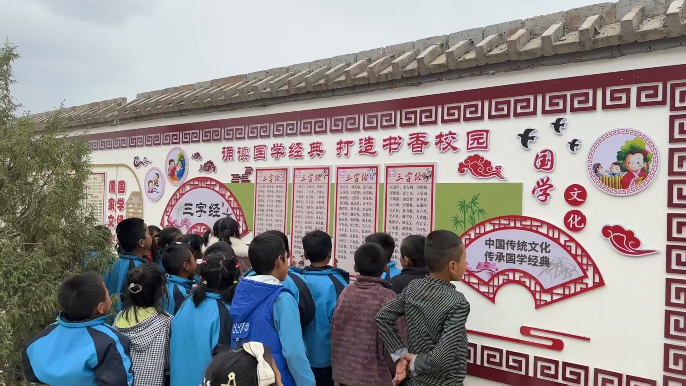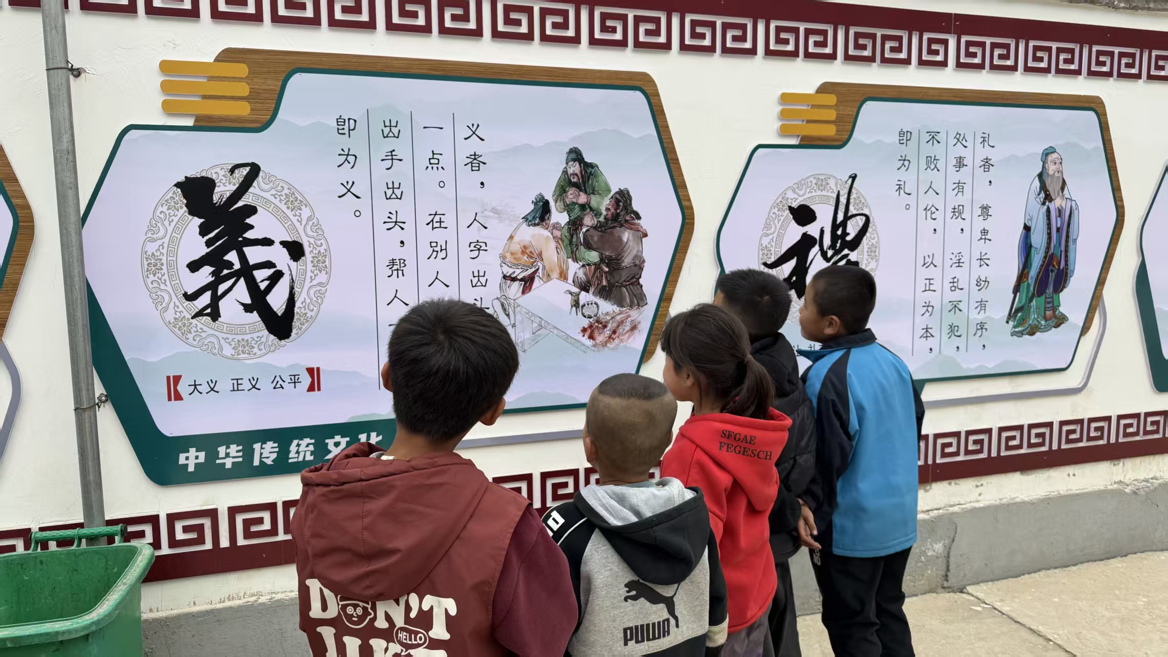 文化墻分多個(gè)版塊,分門別類,圖文并茂,從黨和國(guó)家教育方針政策介紹,到社會(huì)主義核心價(jià)值觀宣講,再到科學(xué)家精神、國(guó)學(xué)經(jīng)典、勸學(xué)寓言故事以及近代物理所幫扶工作紀(jì)實(shí)及活動(dòng)掠影展示等,涉獵廣泛,內(nèi)容豐富,較好地發(fā)揮了文化墻集中展示、宣傳教育、價(jià)值引領(lǐng)等作用,為孩子們開(kāi)啟了一扇以文化人窗口,搭建了一方交流互促平臺(tái)。