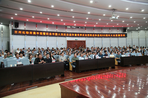 蘭州化物所組織全所職工、學生收看紀念中國人民抗日戰(zhàn)爭暨世界反法西斯戰(zhàn)爭勝利80周年大會
