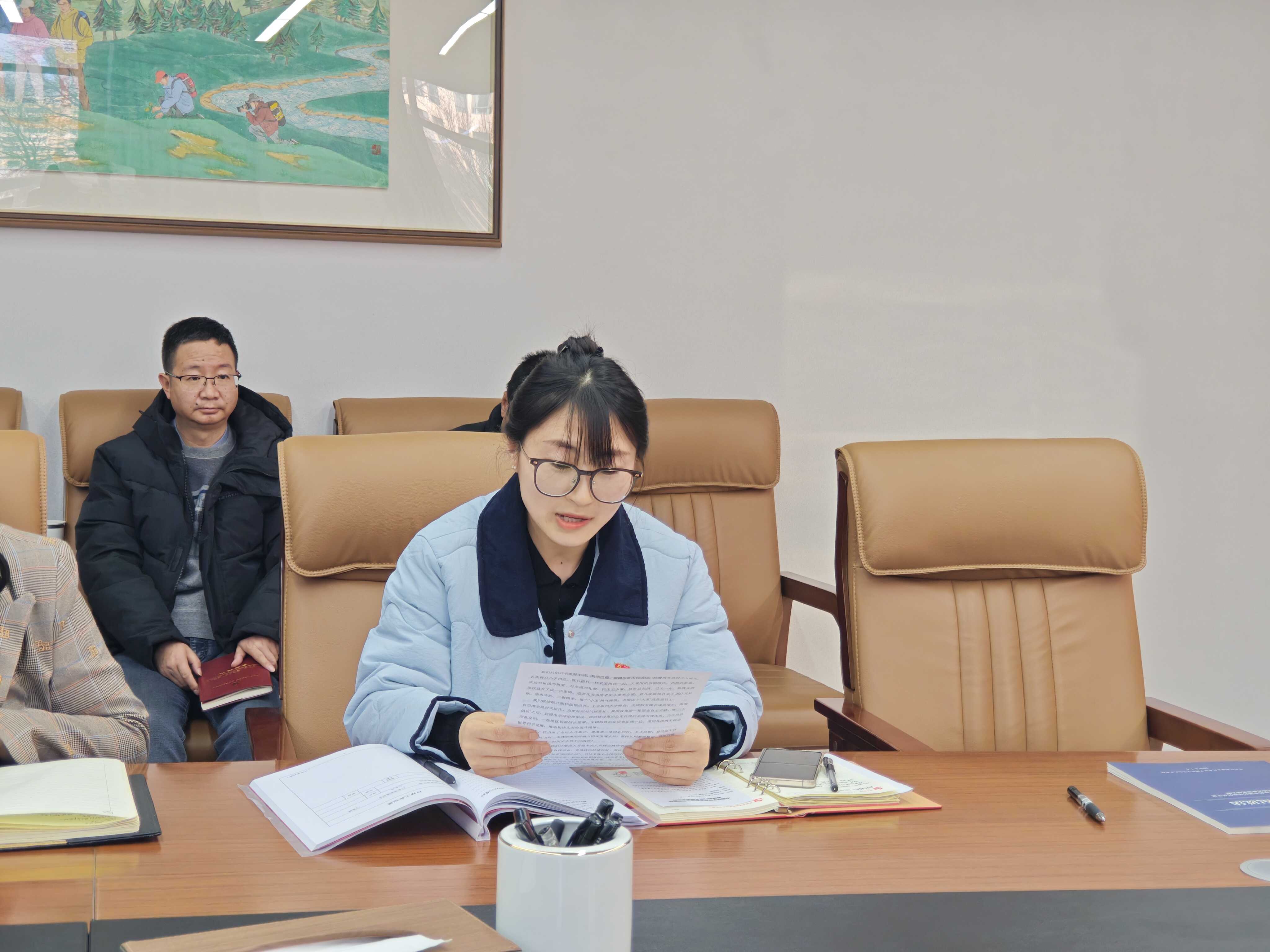 隨后,宣傳委員董亞慧和大家一起重溫了習(xí)近平總書記發(fā)表的2026年新年賀詞,“山海尋夢,不覺其遠(yuǎn);前路迢迢,闊步而行。”習(xí)近平總書記的真情問候、殷殷囑托跨越山海、直抵人心,激蕩起億萬人民攜手并肩為夢想奮斗、為幸福打拼、把宏偉愿景變成美好現(xiàn)實的磅礴力量。