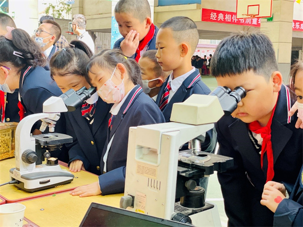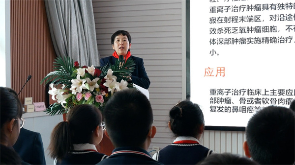 近代物理所生物醫(yī)學(xué)中心狄翠霞研究員作了題為“小離子,大應(yīng)用-重離子加速人民健康”的科普?qǐng)?bào)告,為同學(xué)們介紹了重離子在生命科學(xué)領(lǐng)域中的應(yīng)用,還為孩子們帶去了“微觀世界奇遇”的顯微鏡觀測(cè)實(shí)驗(yàn)。同學(xué)們通過(guò)理論學(xué)習(xí)和動(dòng)手操作,生動(dòng)體驗(yàn)了生命科學(xué)的魅力。同時(shí),加速器技術(shù)中心“超導(dǎo)磁懸浮”實(shí)驗(yàn)和“電磁感應(yīng)現(xiàn)象”實(shí)驗(yàn)也受到了學(xué)校師生的熱烈歡迎,孩子們對(duì)可以懸浮的超導(dǎo)材料表現(xiàn)出了極大的興趣與好奇;通過(guò)觀察不銹鋼與磁鐵在金屬管道(不能被磁化)中不同的下降速度,真切感受電磁感應(yīng)現(xiàn)象。在科學(xué)實(shí)驗(yàn)互動(dòng)體驗(yàn)中,同學(xué)們興趣盎然,紛紛贊嘆科學(xué)的美妙與神奇,以及對(duì)于科學(xué)探索的向往。