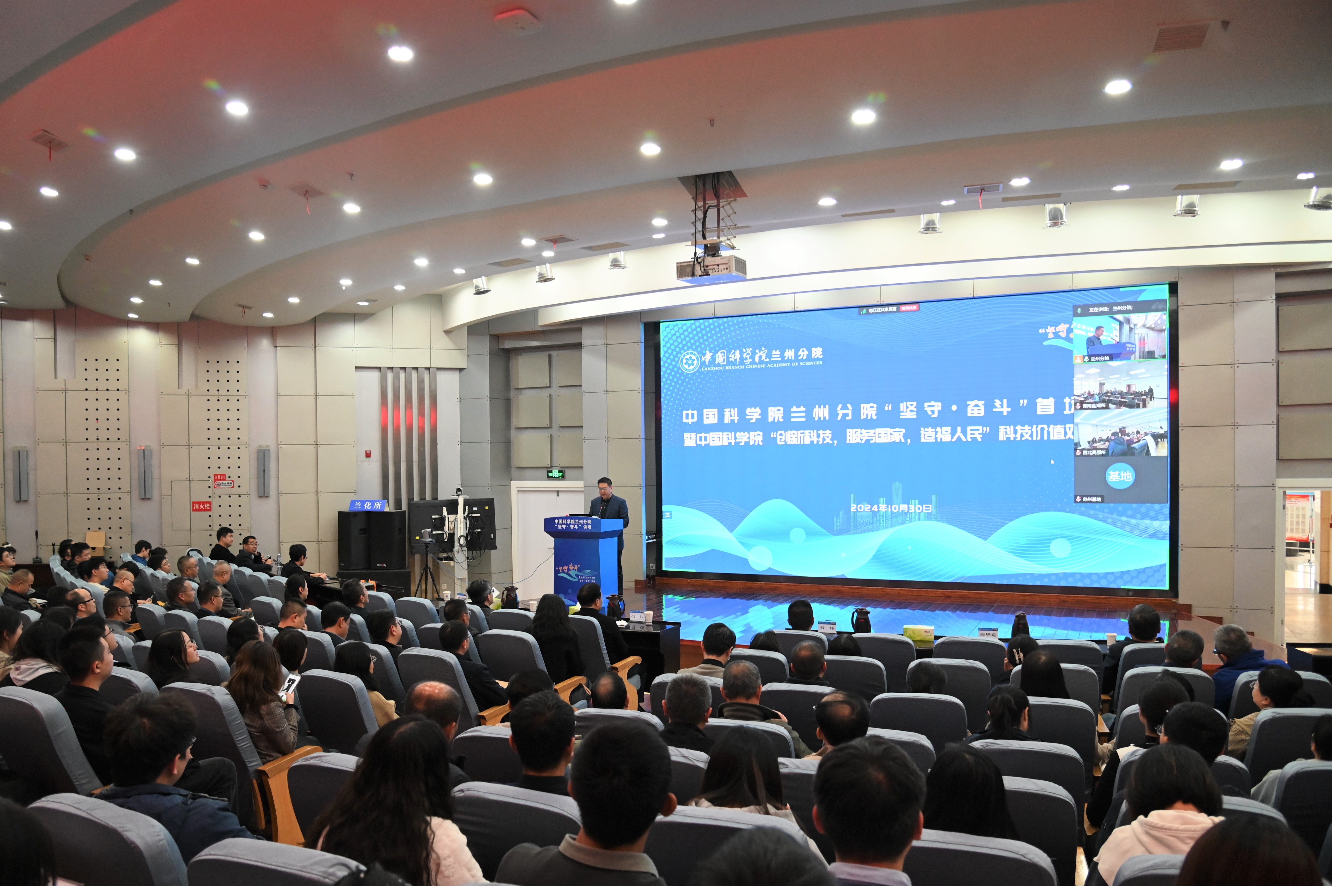 蘭州分院系統(tǒng)在蘭各單位領導班子成員、中層干部、黨支部書記、科研管理骨干、研究生代表,機關全體職工近300人參加報告會。青海鹽湖研究所、西北高原生物研究所以視頻形式線上參加。