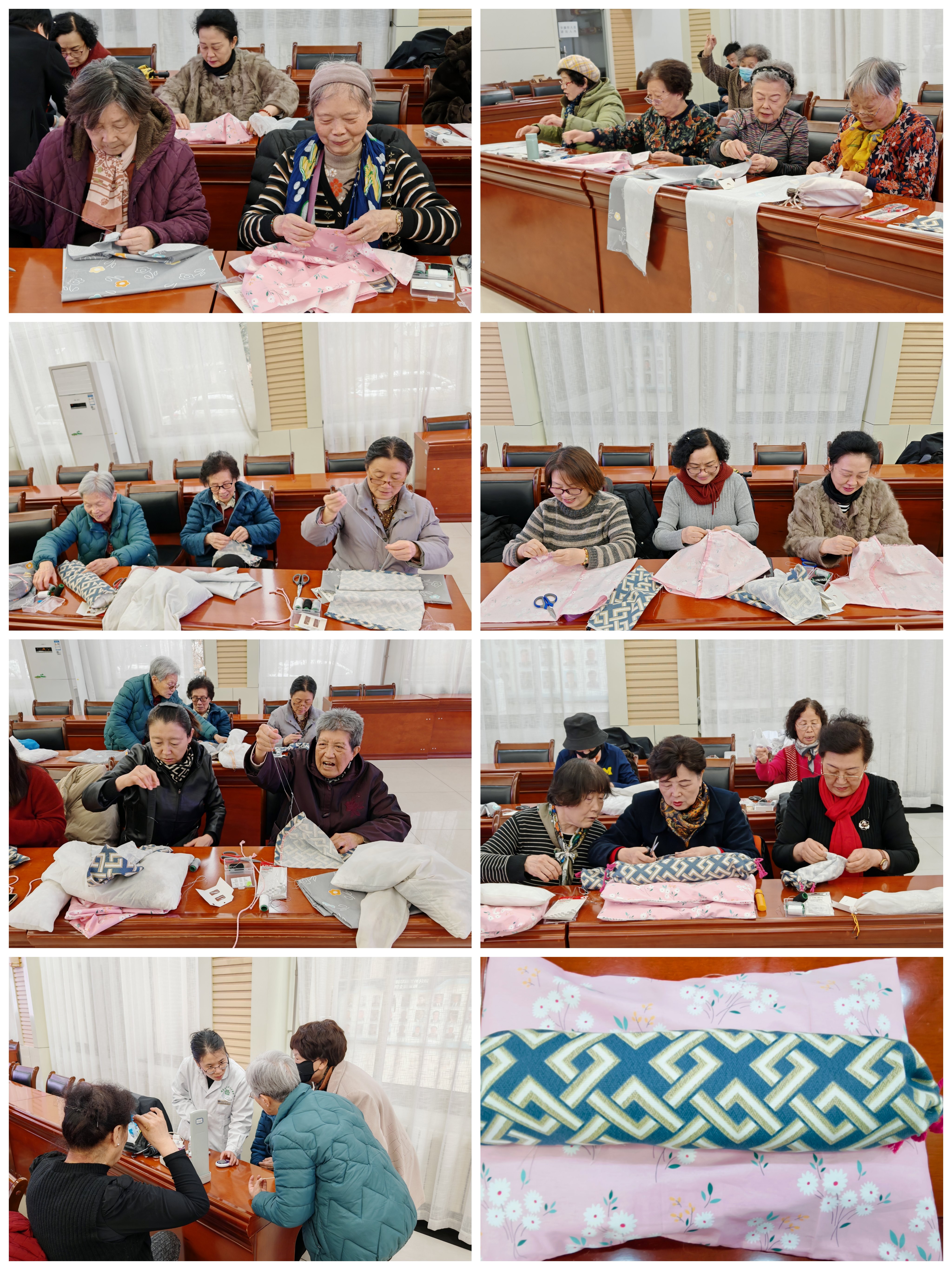 活動(dòng)中,授課老師科普了藥枕“內(nèi)病外治”的中醫(yī)智慧,詳細(xì)介紹當(dāng)歸、艾草、合歡花等十余味中藥材的安神助眠功效,現(xiàn)場藥香裊裊,老同志們興致盎然。在制作中藥頸椎枕與頭枕環(huán)節(jié),老同志們化身“巧手匠人”,從選布折疊到一針一線縫合邊緣,預(yù)留返口;隨后將混合好的中藥原料填入棉麻枕芯,飛針走線間,藥香彌漫,老同志們或交流縫紉技巧,或回憶往日歲月,一針一線既縫制出貼合頸椎曲線的養(yǎng)生枕,更織就了傳統(tǒng)技藝與溫情關(guān)懷交融的匠心之作。