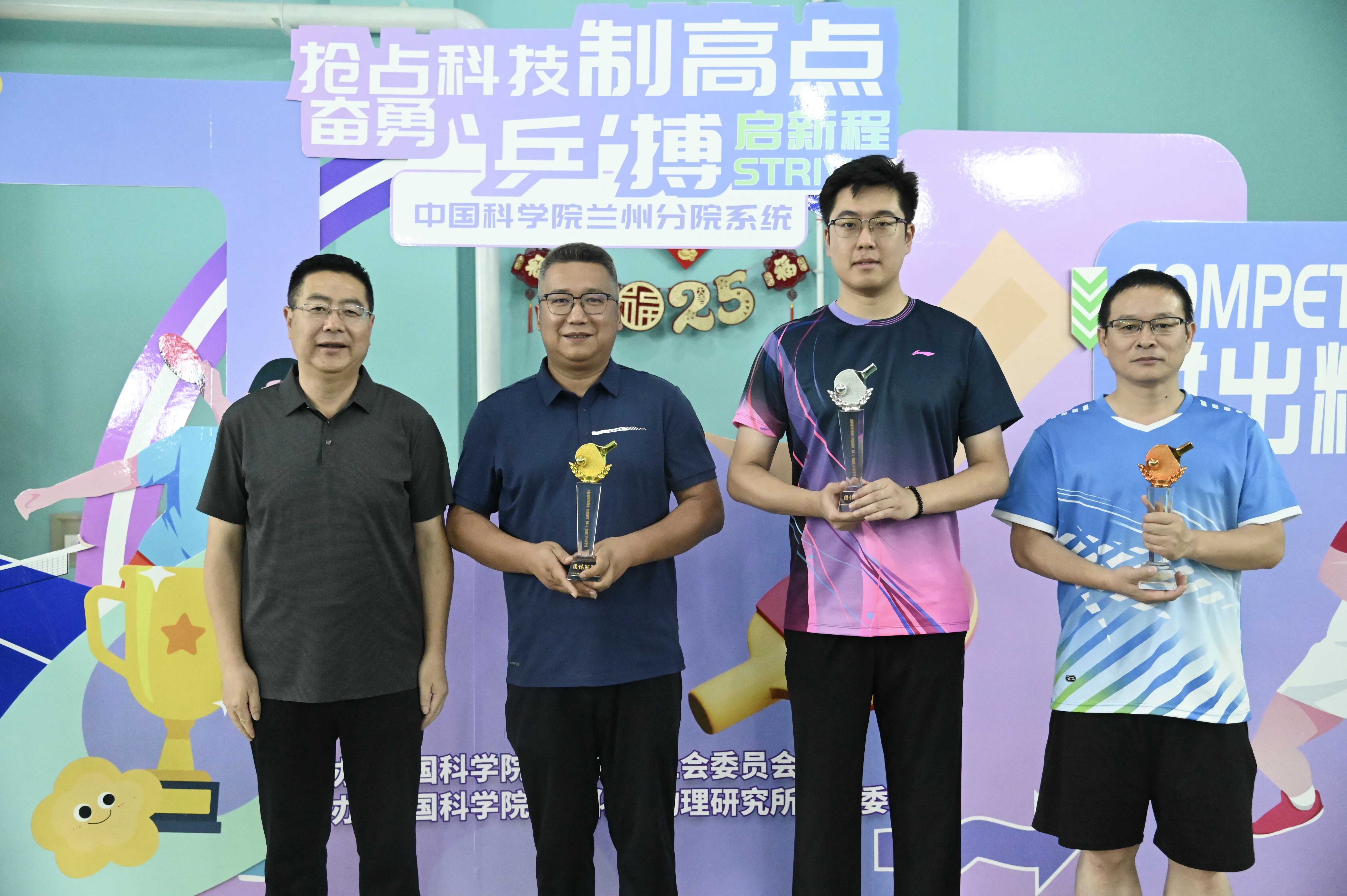 經(jīng)過(guò)激烈的角逐和比拼,率先組比賽中,男子單打冠軍、亞軍分別為西北生態(tài)環(huán)境資源研究院黨委書記張長(zhǎng)春、青海鹽湖研究所副所長(zhǎng)馮海濤。攻堅(jiān)組比賽中,男子單打冠軍、亞軍和季軍分別為西北生態(tài)環(huán)境資源研究院朱強(qiáng)、張明峰和近代物理研究所丁星皓;女子單打冠軍、亞軍和季軍分別為近代物理研究所劉璐、青海鹽湖研究所高丹丹、近代物理研究所李珺;混合團(tuán)體賽冠軍、亞軍和季軍分別為西北生態(tài)環(huán)境資源研究院、近代物理研究所、青海鹽湖研究所;最佳組織獎(jiǎng)、團(tuán)結(jié)拼搏獎(jiǎng)和體育道德風(fēng)尚獎(jiǎng)分別為蘭州化學(xué)物理研究所、西北高原生物研究所和蘭州分院機(jī)關(guān)。