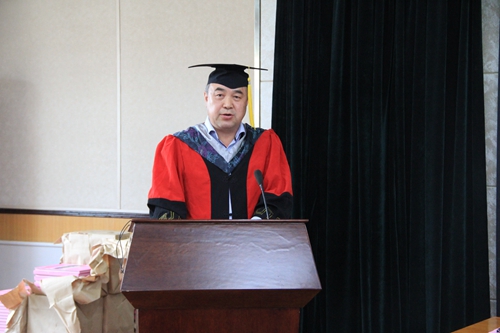 在莊嚴(yán)的國(guó)歌聲中典禮拉開了序幕。賴遠(yuǎn)明首先宣讀了2017年學(xué)位擬授予決定。接著,謝銘在致詞中感謝同學(xué)們與西北研究院共同成長(zhǎng),祝愿同學(xué)們畢業(yè)后做出更好成績(jī)。