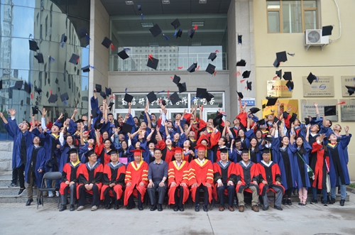 典禮接近尾聲,畢業(yè)生們依次登上主席臺(tái),賴遠(yuǎn)明為畢生扶正流蘇,各位西北研究院領(lǐng)導(dǎo)為畢業(yè)生發(fā)放畢業(yè)紀(jì)念冊(cè)。2017屆研究生畢業(yè)典禮在全場(chǎng)齊唱畢業(yè)歌中圓滿落下帷幕。