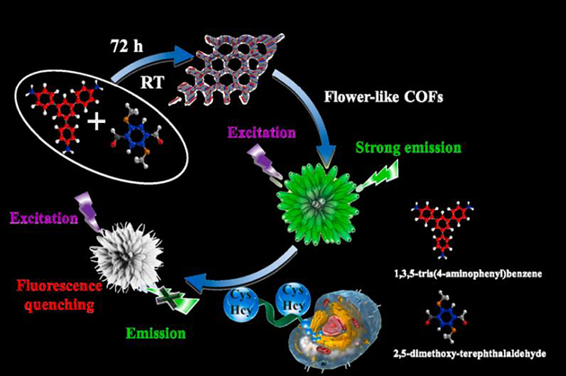 圖1 花狀COFs用于Cys/Hcy的高靈敏熒光檢測
