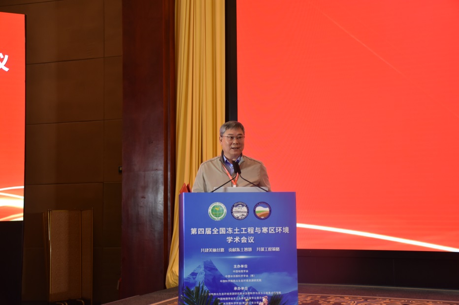 中國科學院院士、中國地理學會理事長陳發(fā)虎在致辭中回顧了我國冰川凍土研究歷史,高度評價了我國在凍土工程與寒區(qū)環(huán)境研究領域取得的可喜成績。中國地理學會副理事長兼秘書長張國友研究員在致辭中強調,冰凍圈科學與凍土工程重點實驗室長期致力于冰川、凍土、寒區(qū)環(huán)境等方面的研究,為我國寒區(qū)資源開發(fā)、生態(tài)環(huán)境保護和重大凍土工程建設作出了重要貢獻。