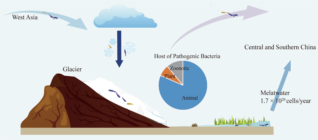 冰川是全球最大的淡水儲備庫,同時(shí)也是天然的微生物保存庫。隨著全球氣候變暖、冰川加速消融,封存在冰川中的致病菌被釋放出來,會對人類帶來潛在的生物安全風(fēng)險(xiǎn)。近幾十年來,環(huán)境中的病原體突破了原有的生態(tài)屏障,而快速變化的冰川生態(tài)系統(tǒng)中致病微生物的特征及傳播方式尚不清楚。