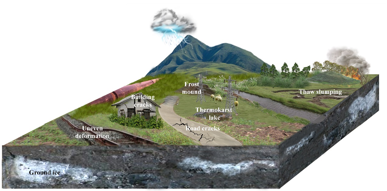 研究結(jié)果顯示,在氣候變暖和環(huán)境變化的影響下,區(qū)域凍土表現(xiàn)出區(qū)域的退化和局部的進(jìn)化。多年凍土分布、地下冰、土體水熱狀態(tài)等的時空變化影響區(qū)域生態(tài)系統(tǒng)分布和演替、能水和碳循環(huán)以及寒區(qū)工程安全。凍土變化過程中,對寒區(qū)環(huán)境致災(zāi)和致利效應(yīng)隨凍土退化過程相互轉(zhuǎn)化。凍土的退化是寒區(qū)環(huán)境變化的重要驅(qū)動因素,定量地探索凍土變化對區(qū)域水-碳資源和生態(tài)環(huán)境的影響及其效應(yīng)轉(zhuǎn)變過程,利用致利效應(yīng),預(yù)防致災(zāi)效應(yīng),科學(xué)應(yīng)對未來氣候變暖帶來的挑戰(zhàn)。