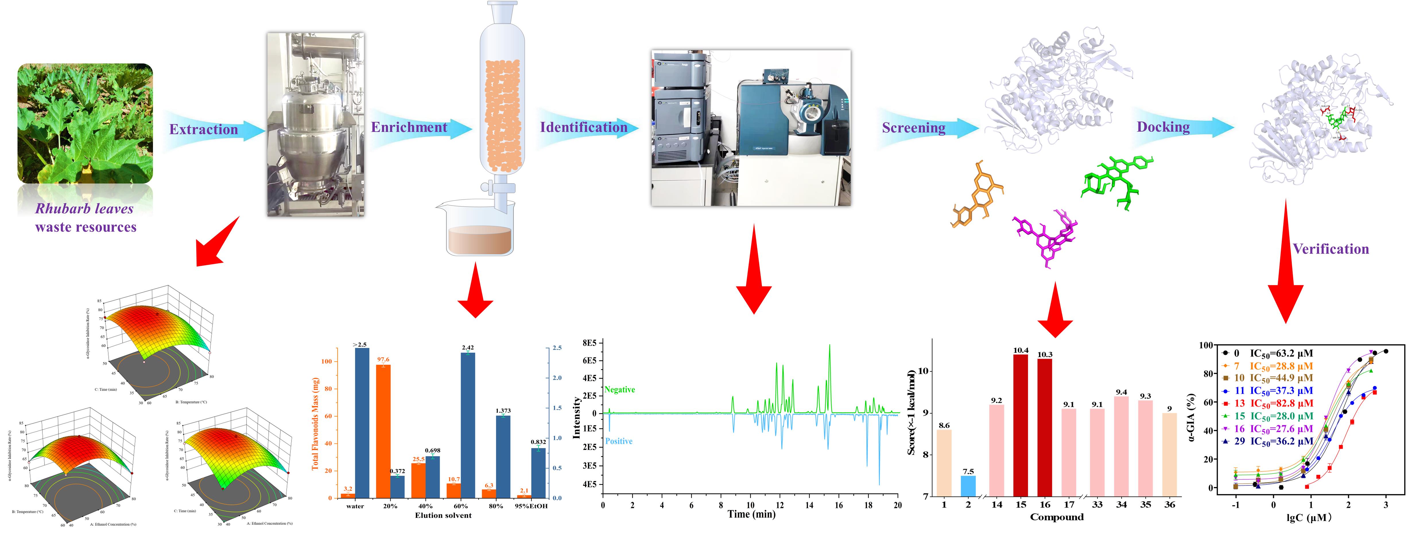 中國(guó)科學(xué)院西北高原生物研究所高原藏藥資源質(zhì)控與藥理毒理評(píng)價(jià)研究團(tuán)隊(duì)以α-葡萄糖苷酶抑制活性作為關(guān)鍵評(píng)價(jià)指標(biāo),建立了基于大孔吸附樹脂富集、UPLC-QTOF-MS/MS分析表征、分子對(duì)接、體外驗(yàn)證的唐古特大黃葉中α-葡萄糖苷酶抑制劑的系統(tǒng)篩選策略,篩選得到myricitrin、rumarin等6個(gè)α-葡萄糖苷酶抑制劑?;诜€(wěn)態(tài)、同步、三維熒光光譜和遠(yuǎn)紫外圓二色譜等多光譜技術(shù)的對(duì)接機(jī)制研究表明,6個(gè)抑制劑均能與α-葡萄糖苷酶發(fā)生結(jié)合并改變靶蛋白的酪氨酸和色氨酸殘基微環(huán)境,通過降低靶蛋白α-螺旋或β-轉(zhuǎn)角等二級(jí)結(jié)構(gòu)的含量從而導(dǎo)致蛋白酶失活,該研究為唐古特大黃廢棄資源的利用提供了新的見解。