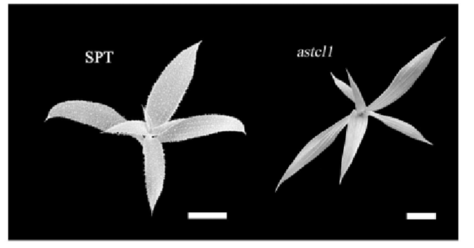 圖2??沙蓬野生型SPT與表皮毛減少突變體astcl1