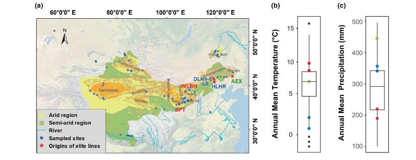 圖4??沙蓬采樣點的地理分布和當?shù)貧夂驐l件以及選育株系的起源地