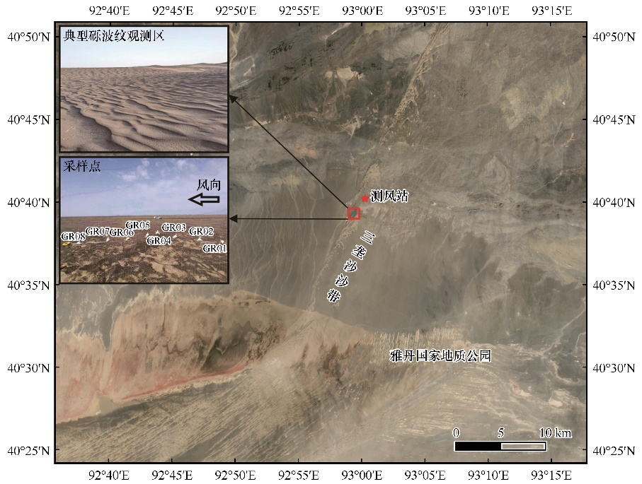 研究發(fā)現(xiàn),礫波紋的發(fā)育與風況和沉積物粒度密切相關(guān)。三壟沙地區(qū)的起沙風主要在春夏兩季,兩季輸沙勢占到全年的67.1%。春季和夏季是觀測礫波紋形成和演化的最佳時間窗口。礫波紋峰頂處顆粒包含極粗沙和極細礫組分,表層較粗顆粒的覆蓋也是礫波紋能夠在強烈風蝕區(qū)發(fā)育的關(guān)鍵因素。對礫波紋的深入研究,有助于理解與其他行星(如火星)相類似的巨型波紋等風成地貌的形態(tài)與物質(zhì)組成。