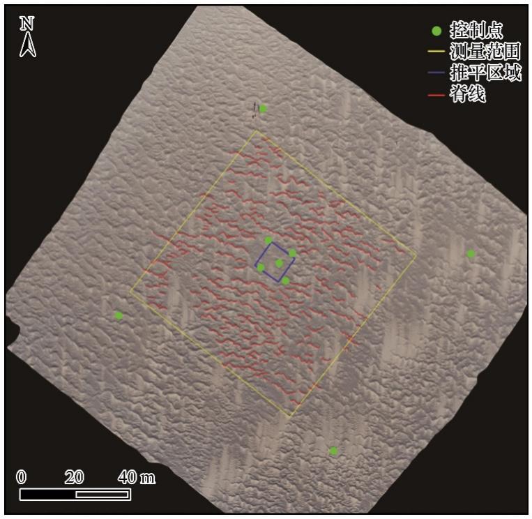 圖2 研究區(qū)礫波紋正射影像和描繪的脊線