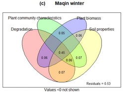 達(dá)日冬季草場(a)、瑪沁夏季草場(b)及瑪沁冬季草場(c)高寒草甸土壤微生物碳氮磷含量及其化學(xué)計量比的方差分解分析
