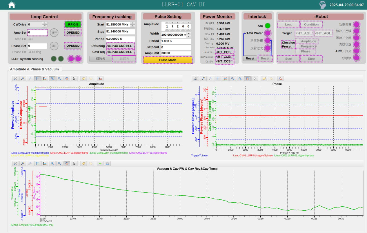 在惠州裝置區(qū)的工程現場,30余名黨員、科研骨干組成的攻堅團隊開展多系統(tǒng)聯合攻關。團隊針對QWR007超導段首套模組進行集成性能測試。測試數據顯示,在脈沖和連續(xù)波模式下該模組分別實現7kW及4kW高功率加載,各項參數和關鍵指標全面達標。這一成果驗證了系統(tǒng)集成功能的可靠性,為日后項目建設和束流調試奠定關鍵技術基礎。