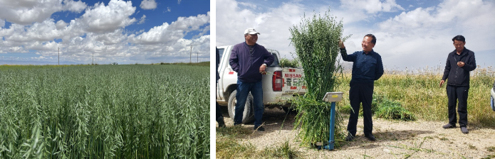 中國科學(xué)院西北高原生物研究所高原作物種質(zhì)資源創(chuàng)新與利用學(xué)科團組培育出的高燕16和高燕17兩個燕麥新品種于2022年8月22日通過青海省農(nóng)作物品種審定委員會認定備案,兩個新品種無論是草產(chǎn)量還是在種子產(chǎn)量相較原有燕麥主栽品種均具有較大優(yōu)勢,廣受燕麥草種、飼草生產(chǎn)企業(yè)和專業(yè)合作社的好評。2022年,兩個燕麥新品種建立良種繁育基地共1.23萬畝;2023年,兩個燕麥新品種在青海省海西州、海南州、湟中區(qū)等地示范推廣8.83萬畝;2024年,青海奔盛草業(yè)和互助天佑德青稞酒公司在德令哈市尕海鎮(zhèn)和蓄集鄉(xiāng)分別種植0.7萬畝和0.8萬畝,產(chǎn)量和耐鹽堿能力突出,同時在青海海南、甘肅山丹軍馬場、西藏日喀則、阿里和新疆伊犁等地也有較大面積種植,2024年度推廣種植達20.16萬畝。高原作物種質(zhì)資源創(chuàng)新與利用學(xué)科團組分別于2020年和2021年申報兩個燕麥新品種的國家植物新品種保護權(quán),其中高燕16于2025年5月1日獲得正式授權(quán)(品種權(quán)號:CNA20201004745),這是研究所獲得的首個國家植物新品種保護權(quán)。此次品種權(quán)的獲得,為高燕16品種的市場化推廣和科技成果轉(zhuǎn)化提供了堅實基礎(chǔ)。