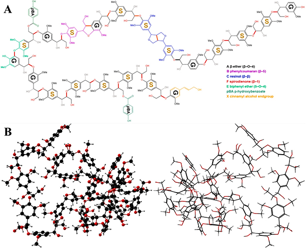 圖 1. 果實(shí)木質(zhì)素的二維(A)和三維(B)結(jié)構(gòu)