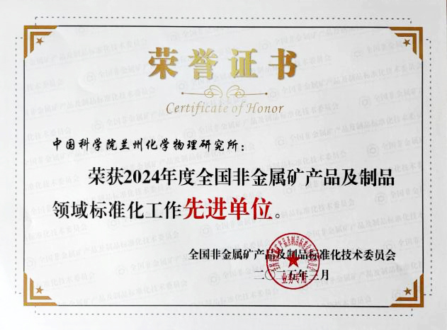蘭州化物所獲2024年度全國(guó)非金屬礦產(chǎn)品及制品領(lǐng)域標(biāo)準(zhǔn)化工作先進(jìn)單位