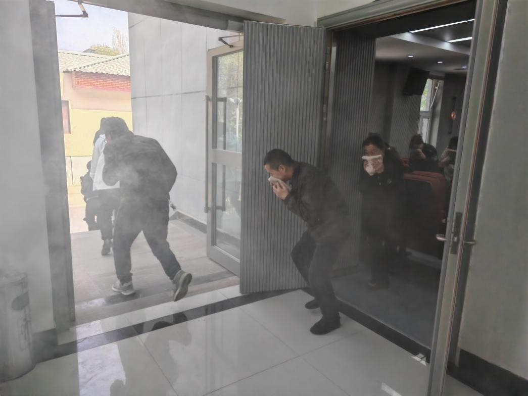 理論培訓(xùn)后,參訓(xùn)人員在政安消防工作人員指導(dǎo)下開(kāi)展實(shí)戰(zhàn)演練。模擬場(chǎng)景設(shè)定為學(xué)術(shù)報(bào)告廳因電路短路引發(fā)火情,濃煙迅速蔓延。隨著警報(bào)響起,應(yīng)急指揮組立即啟動(dòng)預(yù)案,疏散引導(dǎo)員按分工組織人員低姿捂鼻,沿安全通道撤離至指定集合點(diǎn)。隨后,又組織人員使用干粉滅火器對(duì)模擬火源進(jìn)行撲滅。整個(gè)演練過(guò)程響應(yīng)迅速、分工明確,快速進(jìn)行安全疏散。