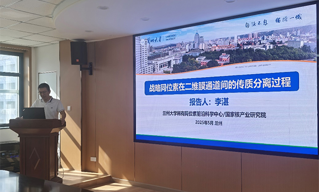 李湛作了題為“戰(zhàn)略同位素在二維膜通道間的傳質(zhì)分離過程”的報(bào)告。介紹了同位素分離的重要性、應(yīng)用需求和分離現(xiàn)狀,創(chuàng)新性地發(fā)展了系列綠色環(huán)保、低能耗、可連續(xù)分離的膜分離技術(shù),他們通過在二維納米片表面及二維層狀膜的層間原位限域引入活性位點(diǎn),利用活性位點(diǎn)的同位素效應(yīng),結(jié)合二維層狀膜的超長傳質(zhì)通道,利用擴(kuò)散速率的差異進(jìn)行高效氫同位素分離、鋰離子與鋰同位素分離、醫(yī)用同位素的高效分離以及鹵水中鈾資源的高效分離,闡明了復(fù)雜體系中目標(biāo)離子、分子、同位素在二維層間多功能通道的識別與篩分機(jī)制。