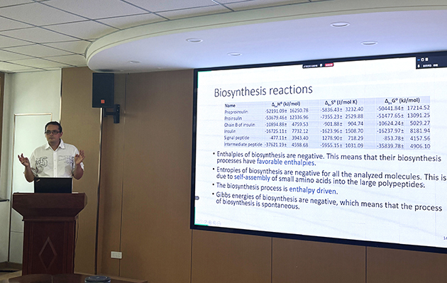 7月3日,塞爾維亞貝爾格萊德大學(xué)化學(xué)、技術(shù)和冶金研究所(ICTM)Marko Popovi?研究員應(yīng)邀訪問中國科學(xué)院蘭州化學(xué)物理研究所,并作了題為“Chemical thermodynamics of biomolecules: Biothermodynamic analysis of biological synthesis of insulin and hemoglobin”的學(xué)術(shù)報告。