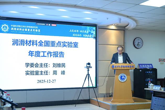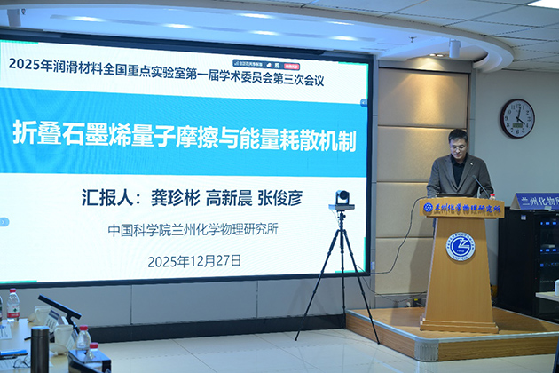 蘭州化物所所長、實驗室主任周峰研究員作了2025年度工作報告,全面梳理科研成果、平臺建設、人才引育、產(chǎn)業(yè)化等領域的成效,深入剖析現(xiàn)存問題與改進思路,明確2026年工作重點與核心發(fā)展目標。蔡美榮研究員、鮑路瑤副研究員、龔珍彬副研究員分別作了“固/介質(zhì)復合潤滑材料的空間環(huán)境效應及在軌驗證研究”“潤滑油材料的高通量計算和人工智能設計”“折疊石墨烯量子摩擦與能量耗散機制”的學術(shù)報告。