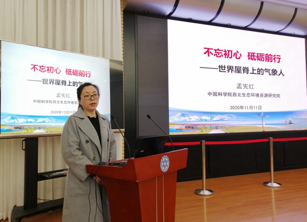 報告會特邀2019 年“中國科學院年度感動人物”入選者孟憲紅研究員作《不忘初心、砥礪前行——世界屋脊上的氣象人》主題報告。孟憲紅研究員從“懷揣夢想、千里求學”“情系高原、筑夢大氣”“潛心科研、銳意進取”“不忘初心、”砥礪前行四個方面分享了她的求學、科研經歷和感悟。從樸實無華的語言中令人看到她帶領團隊始終秉承“特別能吃苦、特別能戰(zhàn)斗、特別能奉獻、特別能團結、特別能忍耐”的“牦牛精神”,面對困難她披荊斬棘、堅守信念,把科學研究當作自己的生命,用勤奮鋪就科研之路,用韌性點燃科研之旅。