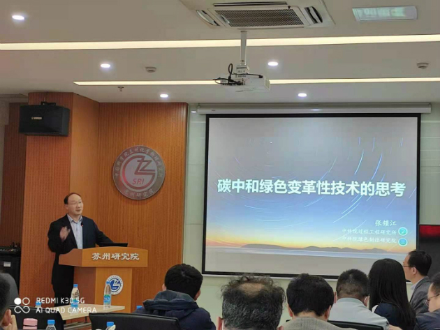 4月25日,中國科學(xué)院院士、中科院過程工程研究所張鎖江研究員應(yīng)邀訪問中國科學(xué)院蘭州化學(xué)物理研究所蘇州研究院,并作了題為“碳中和綠色變革性技術(shù)的思考”的學(xué)術(shù)報告。