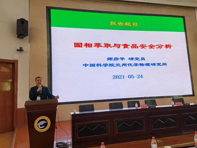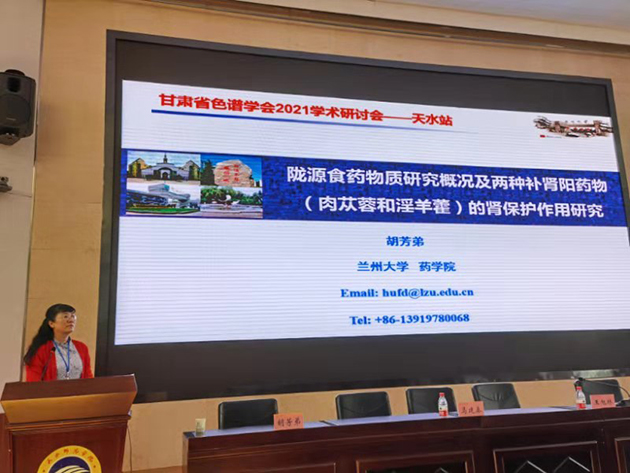 甘肅省化學(xué)會色譜專業(yè)委員會秘書長邱洪燈研究員主持會議學(xué)術(shù)報告。師彥平研究員,蘭州大學(xué)陳興國教授,甘肅省醫(yī)學(xué)科學(xué)研究院藥物研究所所長、國家中醫(yī)藥管理局三級中藥分析實驗室主任石曉峰、蘭州大學(xué)胡芳弟教授分別作了題為“固相萃取與食品安全分析”“基于金屬有機框架材料的毛細管電泳在手性分離中的應(yīng)用研究”“藥用植物高值化利用的思考與實踐”“隴源食藥物質(zhì)產(chǎn)業(yè)概況及兩種補腎陽中藥的腎保護作用研究”的大會報告。浙江福立儀器工程師雷曉強作了題為“福立儀器的發(fā)展之路及行業(yè)整體調(diào)整解決方案”的報告。