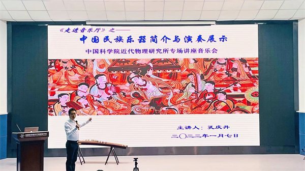 本次論壇以《<走進(jìn)音樂廳>之中科院近代物理所新年民樂專場講座》為主題,報(bào)告人孔慶丹教授來自于西北師范大學(xué)音樂學(xué)院,報(bào)告人詳細(xì)介紹了包括笛、嗩吶、笙、二胡、琵琶、柳琴、阮、箏等在內(nèi)的多種傳統(tǒng)民間樂器,同時配以現(xiàn)場演奏的方式,使得大家認(rèn)識欣賞樂器的同時也深入了解了各類民樂的表現(xiàn)形式以及音樂廳文化,對民樂有了更加立體、直觀的認(rèn)識。報(bào)告結(jié)束,大家就如何提高個人藝術(shù)修養(yǎng)以及對青少年的音樂啟蒙教育等問題與主講人進(jìn)行了熱烈的探討和交流。