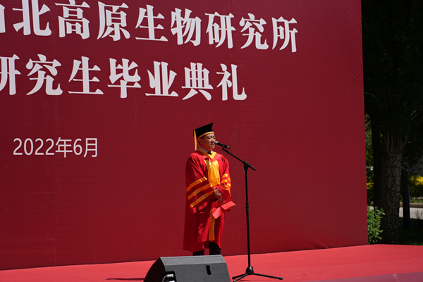 6月10日下午,2022屆研究生畢業(yè)典禮在中國(guó)科學(xué)院西北高原生物研究所舉行。所長(zhǎng)陳世龍,黨委書(shū)記、副所長(zhǎng)張景光,黨委副書(shū)記、紀(jì)委書(shū)記楊勇剛,副所長(zhǎng)楊其恩,管理部門(mén)負(fù)責(zé)人,畢業(yè)生導(dǎo)師、2022屆全體畢業(yè)生及畢業(yè)生家長(zhǎng)代表一同參加了典禮。