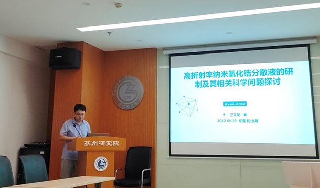 汪文龍研究員介紹了高折射率納米氧化鋯分散液的用途,其主要應(yīng)用在手機(jī)、電腦、電視等液晶顯示器的背光模組中,以增強(qiáng)其發(fā)光亮度和提高清晰度。系統(tǒng)介紹闡述了高折射率納米氧化鋯分散液的研究進(jìn)展,分享了其課題組在該領(lǐng)域課題的提出、材料的設(shè)計以、與企業(yè)的合作開發(fā)交流,以及課題進(jìn)展中遇到的問題和瓶頸。