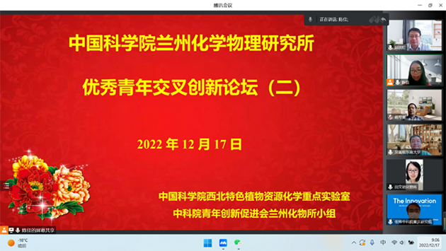 12月17日,中國(guó)科學(xué)院蘭州化學(xué)物理研究所中科院西北特色植物資源化學(xué)重點(diǎn)實(shí)驗(yàn)室聯(lián)合中科院青年創(chuàng)新促進(jìn)會(huì)蘭州化物所小組舉辦了優(yōu)秀青年交叉創(chuàng)新論壇(二)。本次論壇通過(guò)騰訊會(huì)議召開(kāi),相關(guān)領(lǐng)域科研人員和研究生參加了論壇。