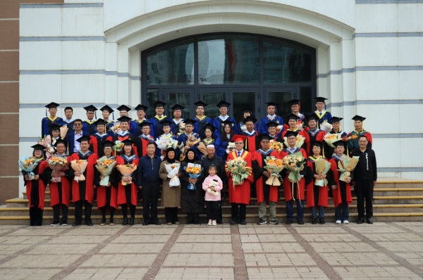 會(huì)上,王建萍宣讀了學(xué)位授予決定,畢業(yè)生們依次上臺(tái),學(xué)位評(píng)定委員會(huì)主席吳志堅(jiān)對(duì)每位畢業(yè)生扶正流蘇、頒發(fā)紀(jì)念品并合影留念。