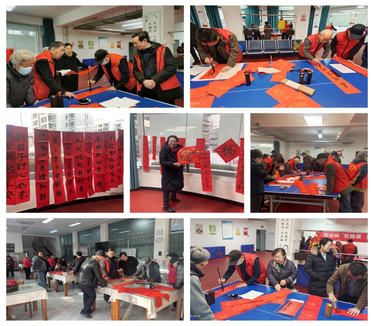 活動分為兩個時段,在東崗區(qū)和北院區(qū)同步開展。作為老年志愿者,靳根明、宋高才和胡剛?cè)粫◥酆谜邇A情奉獻,揮毫潑墨,筆走龍蛇,將祝福付諸筆端。其余志愿者各司其職、高效協(xié)作,確保活動有序進行。活動現(xiàn)場氣氛祥和而溫馨,共為轄區(qū)居民送出春聯(lián)180余幅、福字180余個。