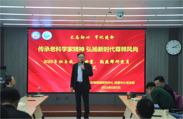 莫道桑榆晚,為霞尚滿天。6月5日下午,中國科學(xué)院西北高原生物研究所人事教育處聯(lián)合特色生物資源研究中心(以下簡稱資源中心)和資源中心黨支部,舉辦以“傳承老科學(xué)家精神 弘揚(yáng)新時(shí)代尊師風(fēng)尚”為主題的教育活動(dòng)暨職工榮休儀式。所長陳世龍,黨委書記、副所長張景光,副所長魏立新、楊其恩,管理部門負(fù)責(zé)人,退休研究員杜玉枝、馬世震和陶燕鐸及資源中心在職職工和研究生50余人參加會(huì)議。會(huì)議由人事教育處副處長楊紅霞和資源中心主任周國英主持。
