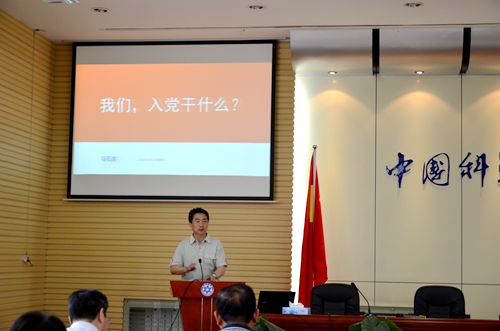 馬石莊以《我們,入黨干什么》為題,從自身的入黨經(jīng)歷講起,以國科大的學(xué)生黨建為例,分析了當(dāng)前黨建工作現(xiàn)狀與問題,并重點(diǎn)闡釋了中央全面從嚴(yán)治黨的要求和開展“兩學(xué)一做”學(xué)習(xí)教育的重要意義。通過對(duì)中外政黨的對(duì)比分析、借助大量史實(shí)資料、數(shù)據(jù)圖片和實(shí)際案例,馬石莊引導(dǎo)大家更加客觀、全面地認(rèn)識(shí)中國共產(chǎn)黨的領(lǐng)導(dǎo)、中國特色社會(huì)主義道路的開辟是歷史選擇、人民的選擇。告誡黨員干部要切實(shí)做到“政治上講忠誠,組織上講服從,行動(dòng)上講紀(jì)律”,要不斷加強(qiáng)黨章黨規(guī)學(xué)習(xí),堅(jiān)定理想信念,自覺承擔(dān)起國家科技事業(yè)發(fā)展的重任。