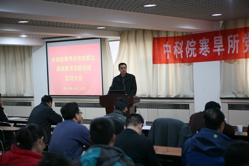 1月24日,寒旱所召開黨的群眾路線教育實踐活動總結會議。蘭州分院督導組組長、黨組書記、副院長謝銘,寒旱所領導班子成員、在職黨員共90人參加會議。會議由寒旱所所長馬巍主持。